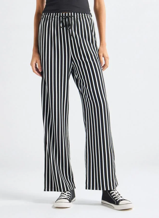 Striped Wide Leg Pants with Semi-Elasticated Waistband and Pockets