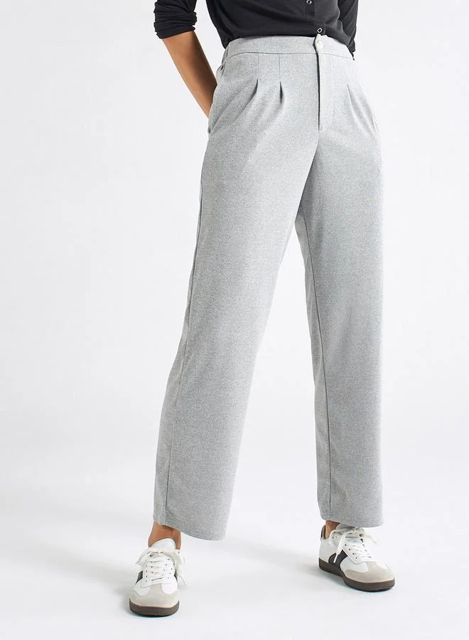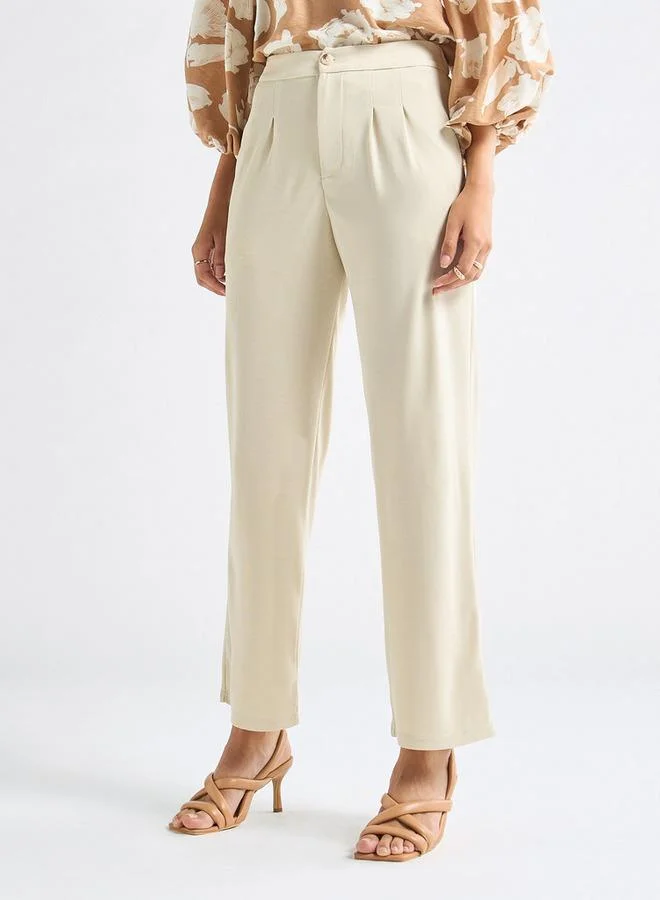 Solid Regular Fit Trousers with Pleat Detail and Pockets