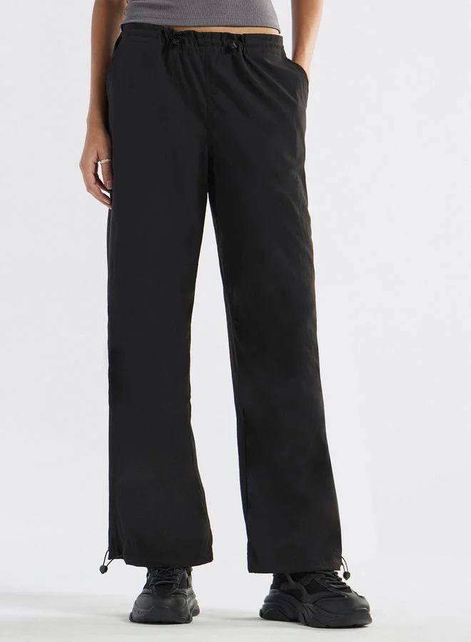 Solid Tape Detail Wide Leg Pants with Cargo Pockets and Drawstring Closure