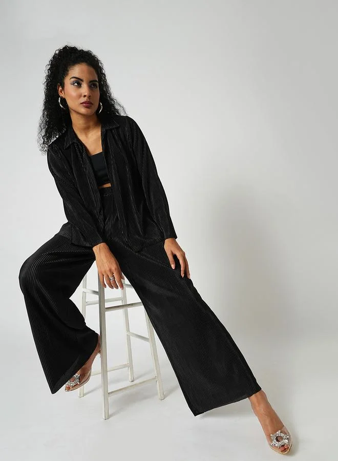 Globus Black Accordion Plisse Shirt and Trousers Co-Ords