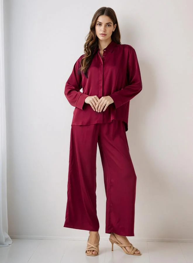 Coord Set with Shirt & Wide Leg Pants