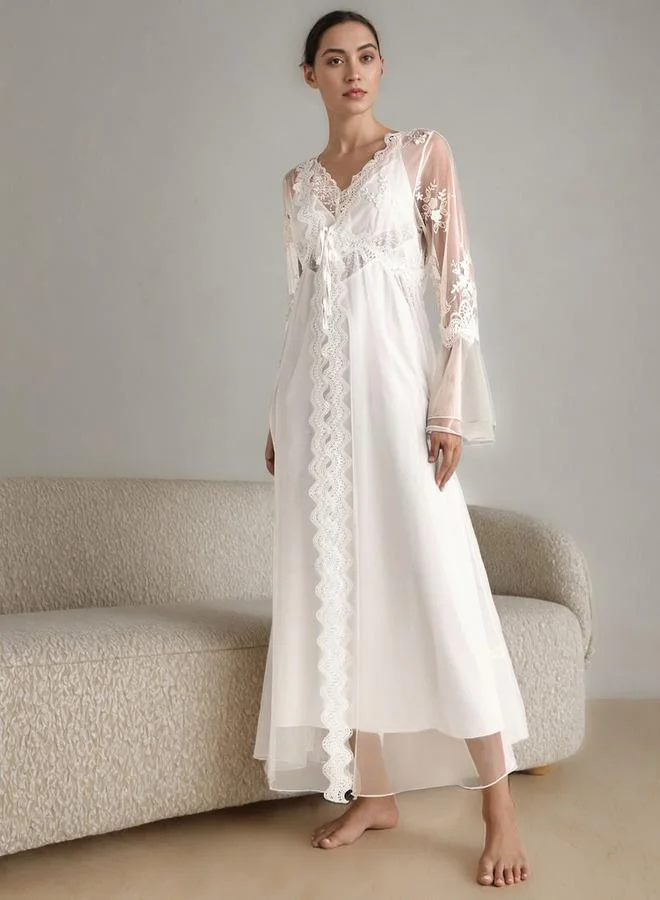 Lace Trim Bridal Night Gown With Robe