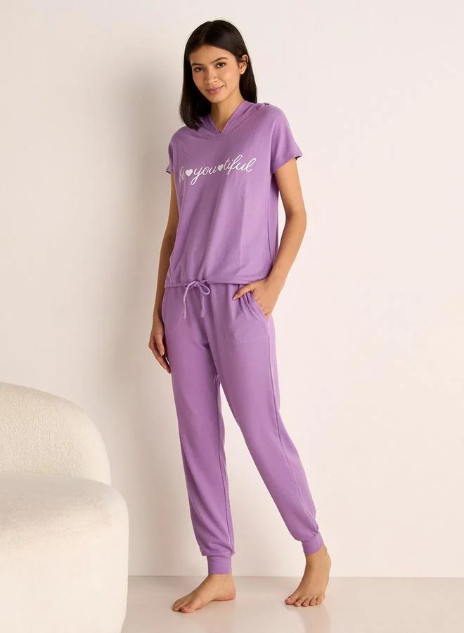 Slogan Print Hooded T-shirt and Elasticated Joggers Set