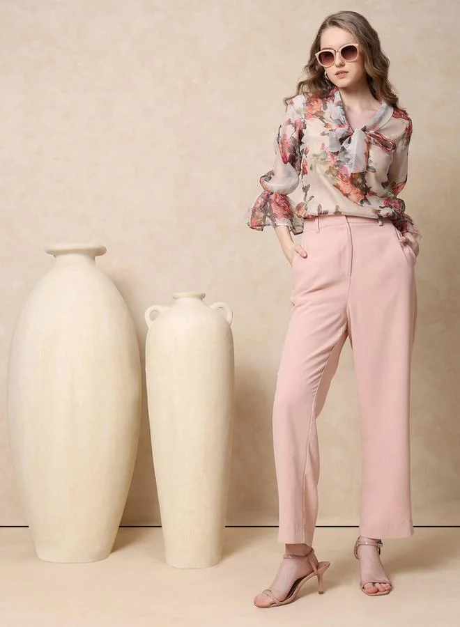 Styli Pink Plain Long Sleeve Wrap Knit Top