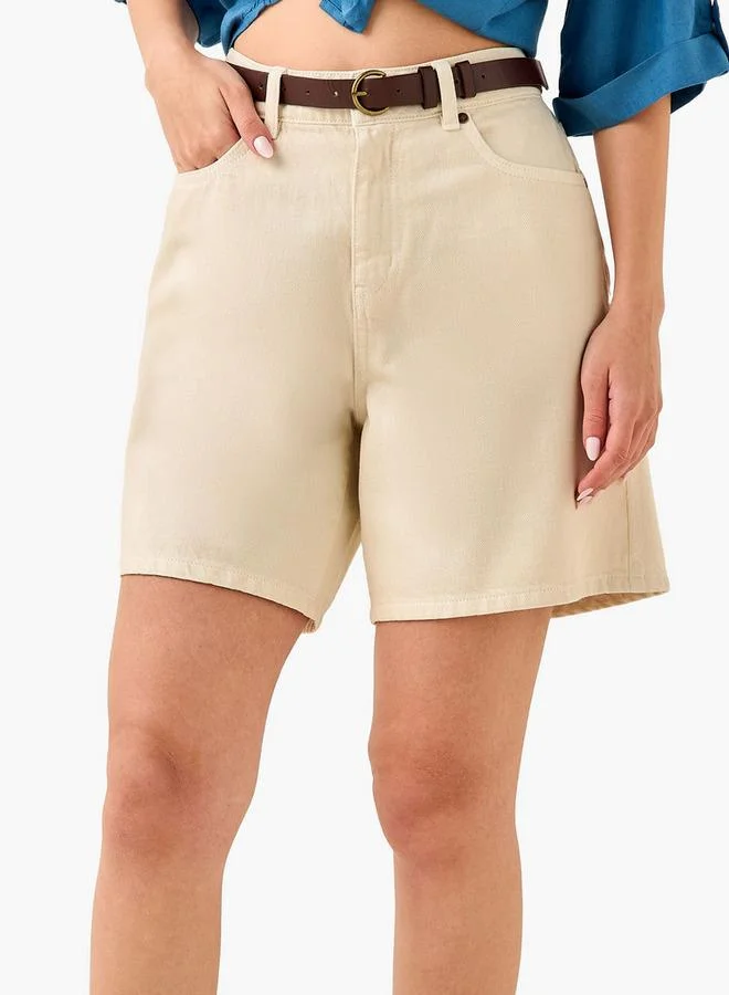 Lee Cooper Denim High Rise Shorts with Belt and Pockets