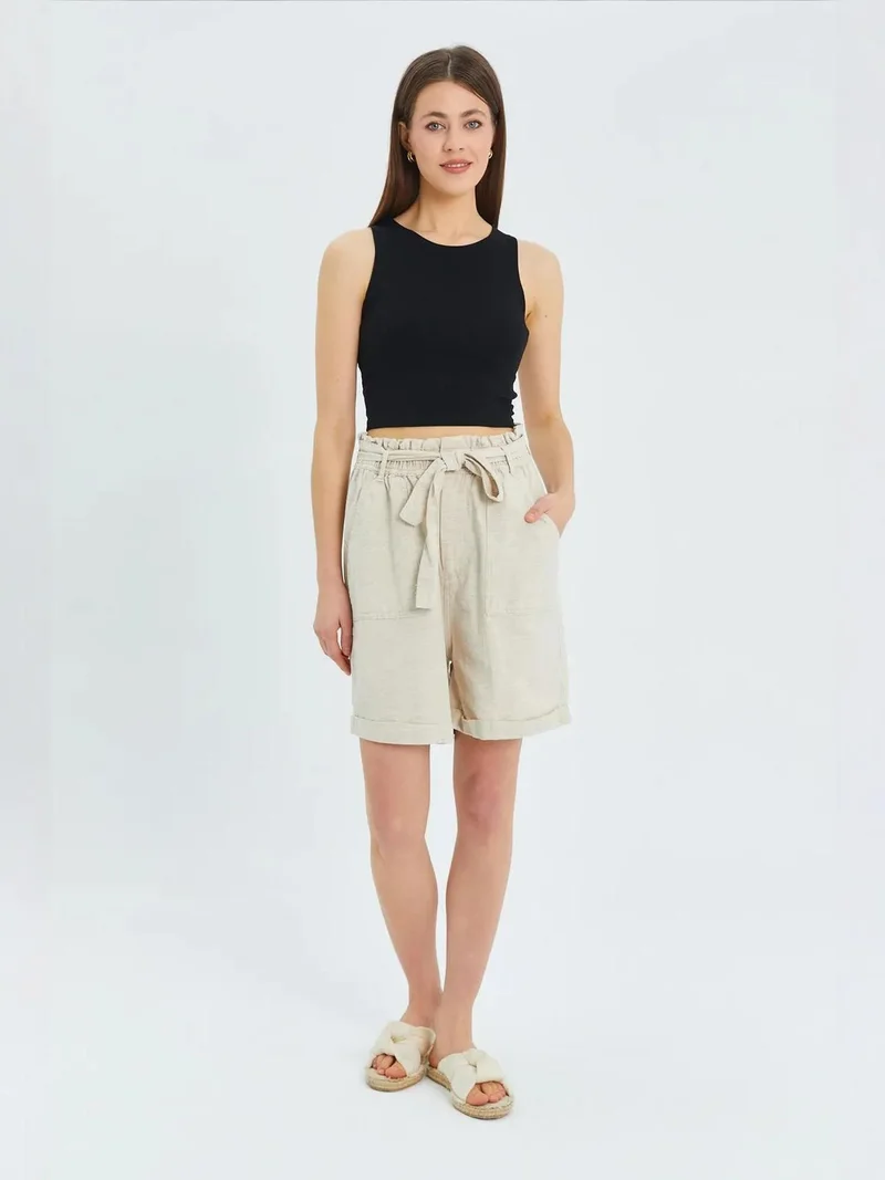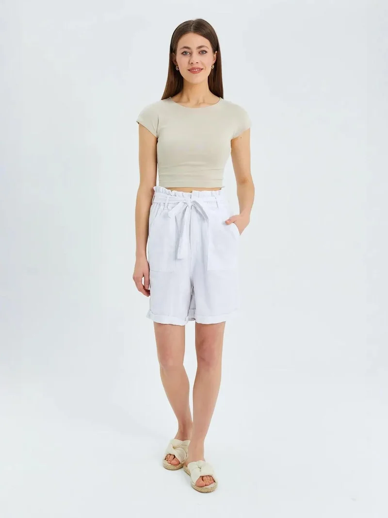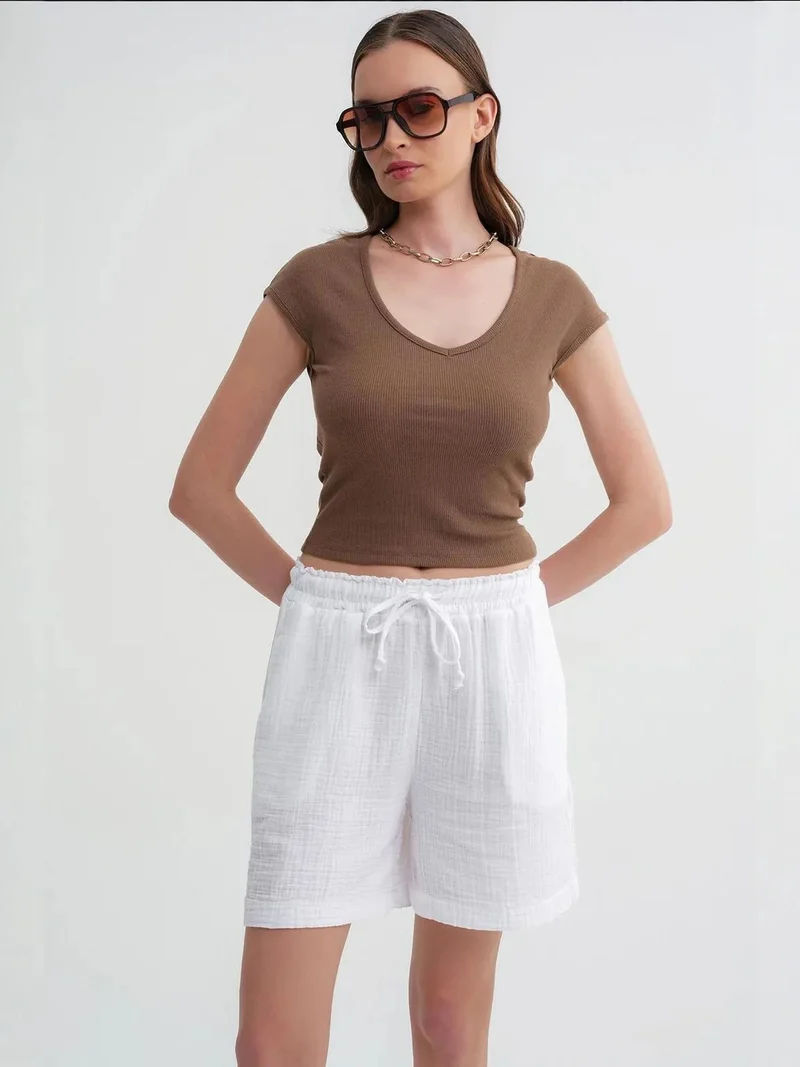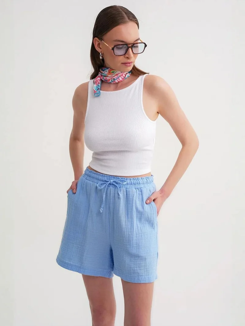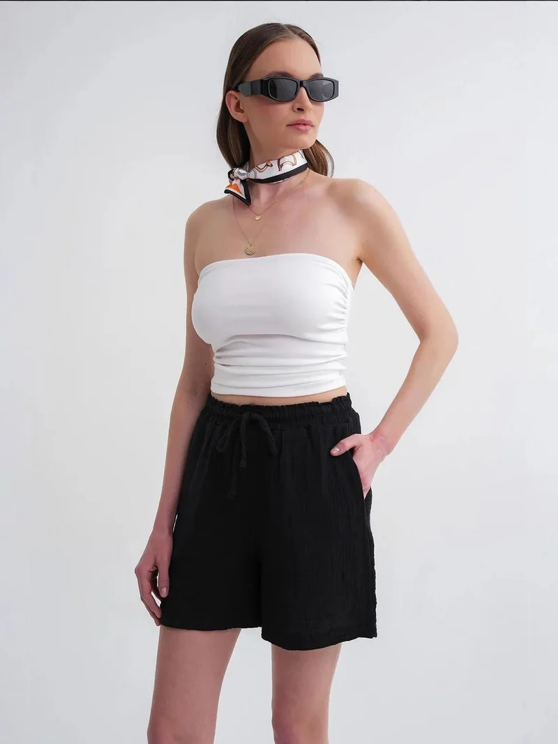 Mixray High Waist Cotton Drawstring Mini Shorts