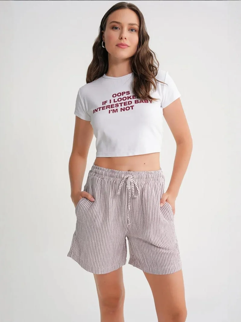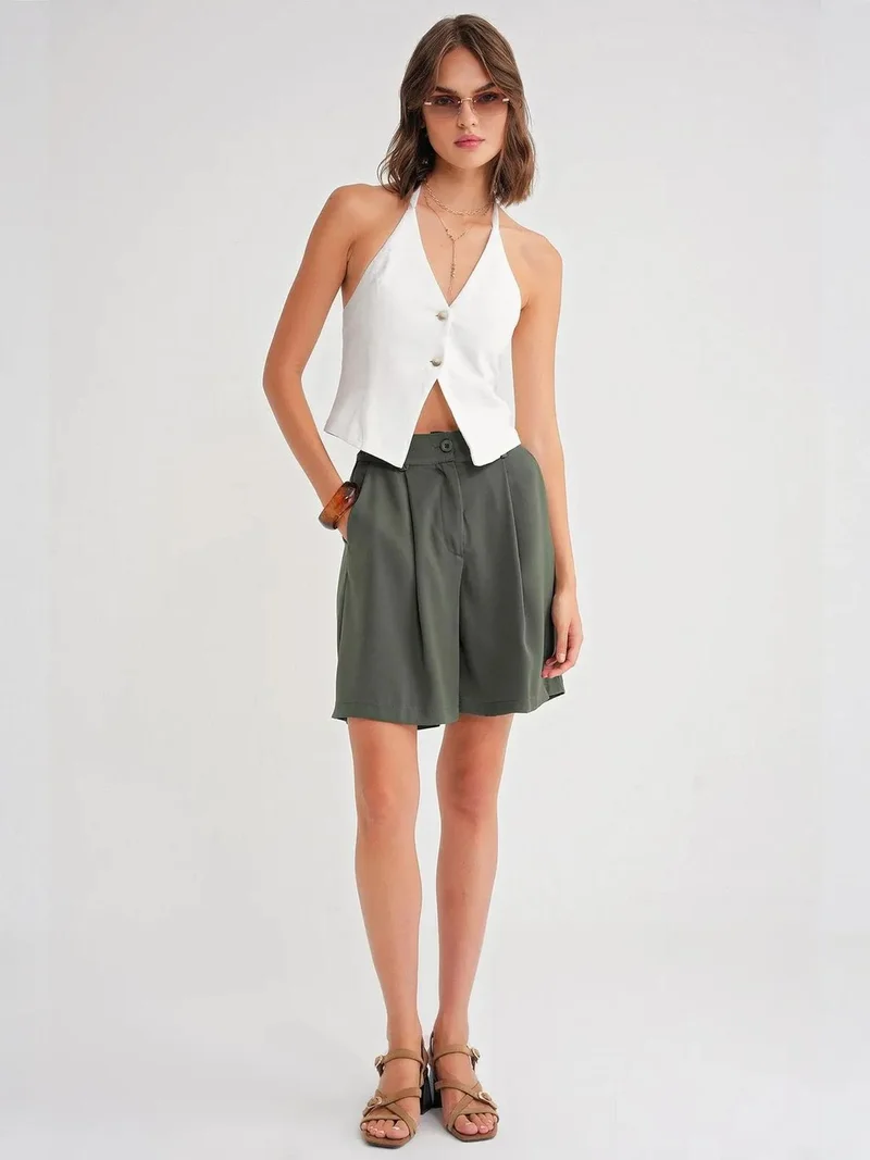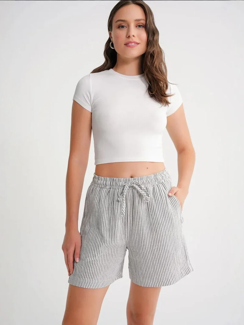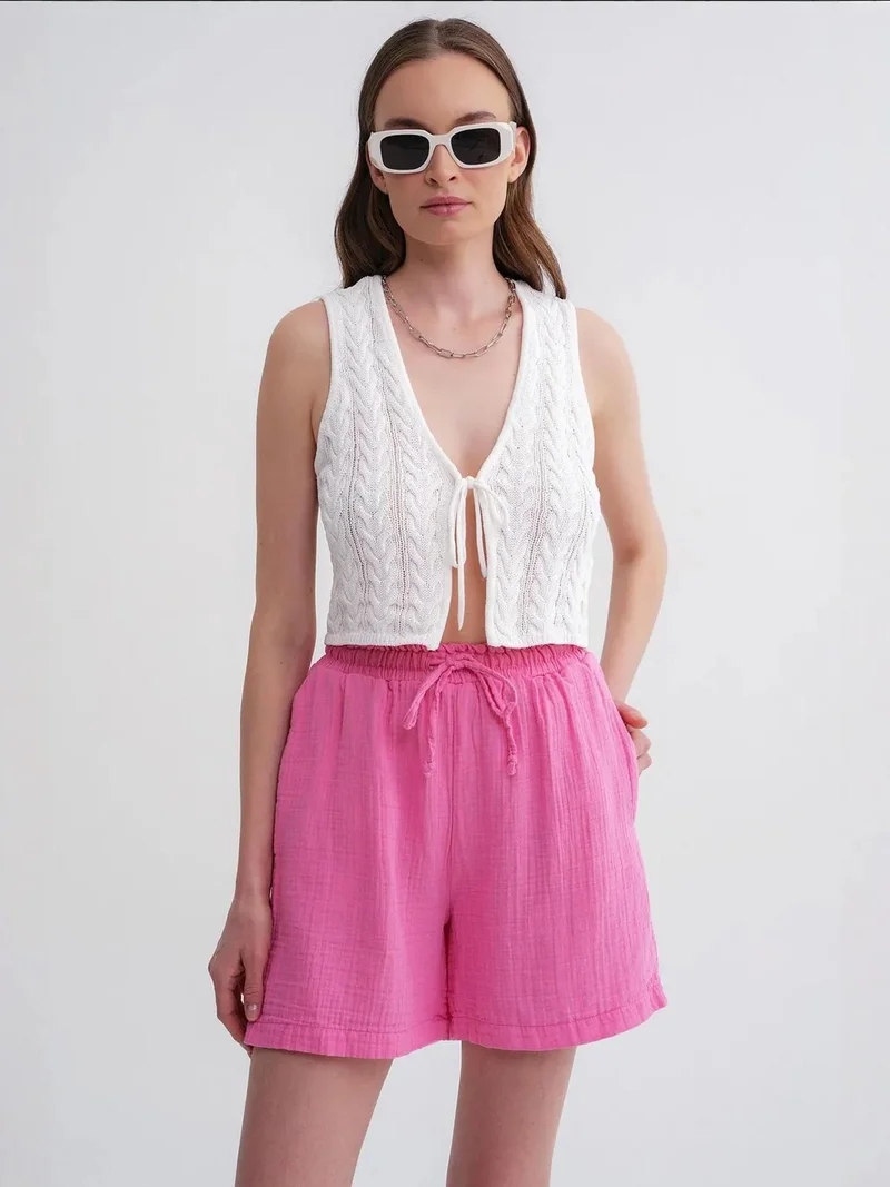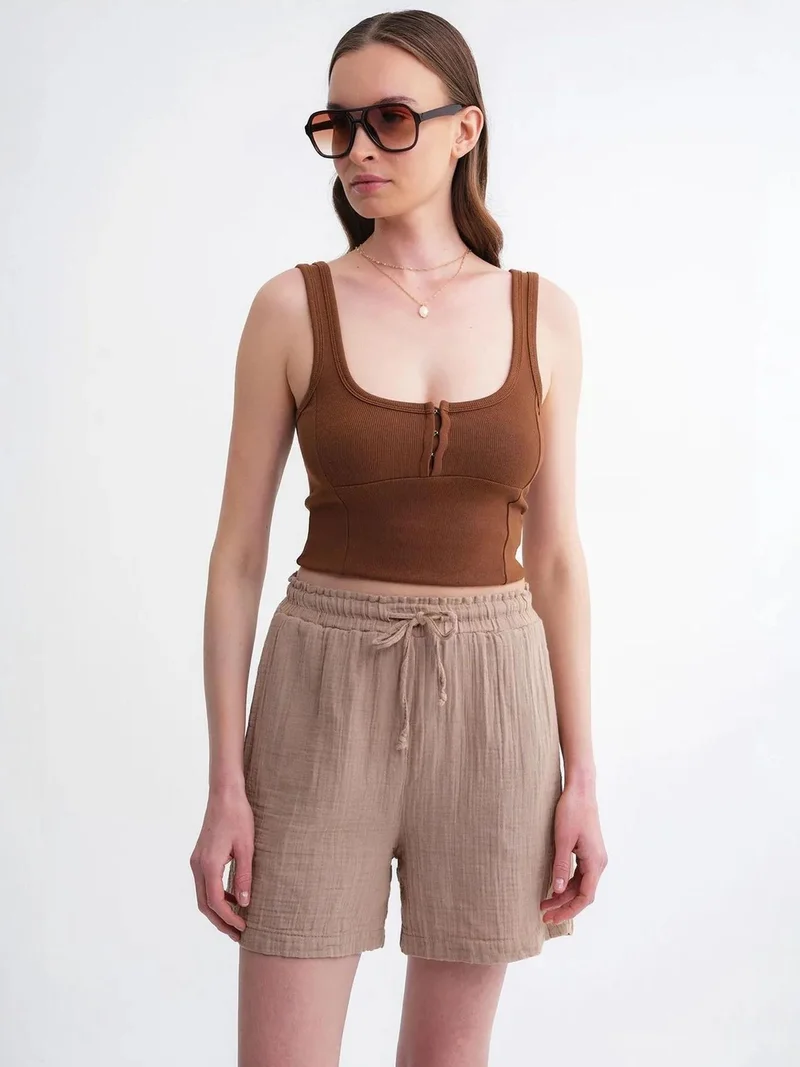 Mixray High Waist Cotton Drawstring Mini Shorts
