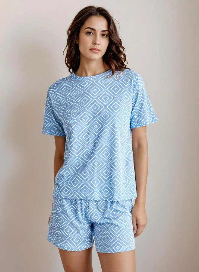 Styli Textured Striped Buttoned Shirt and Pyjama Set