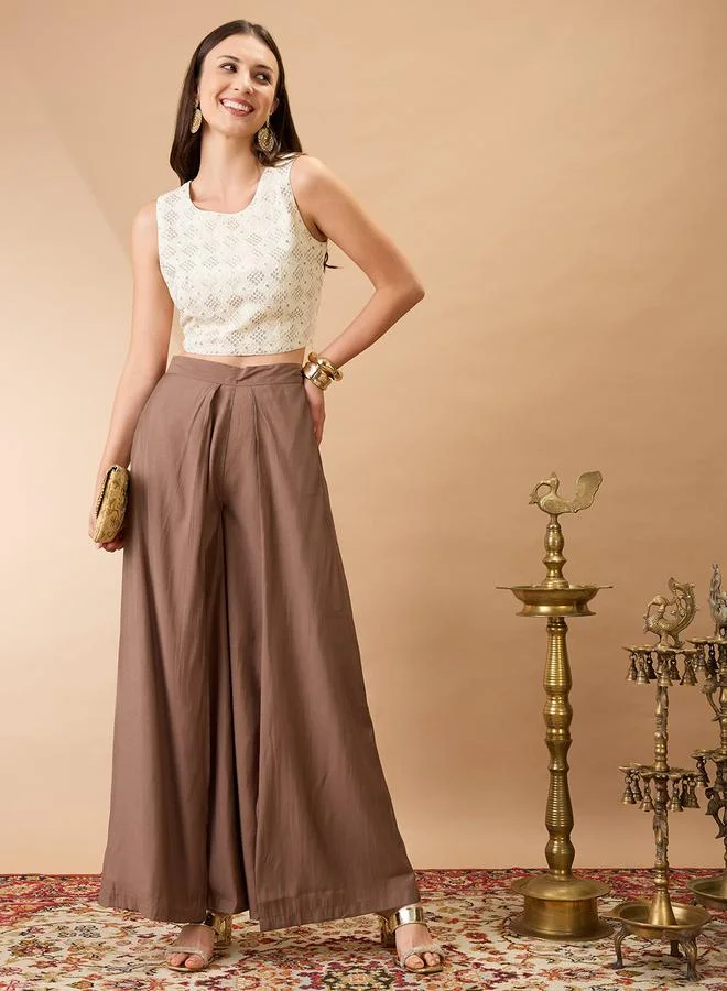Ethnic Printed Elastic Waistband Paneled Palazzos