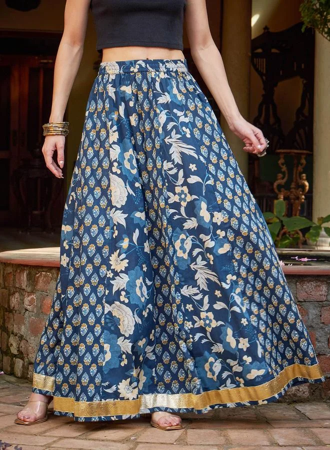 SASSAFRAS Yellow Floral Anarkali Kurta and Pants Set
