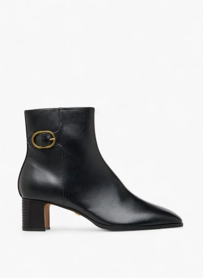 Women's Buckle Accent Block Heeled Ankle Boots with Zip Closure