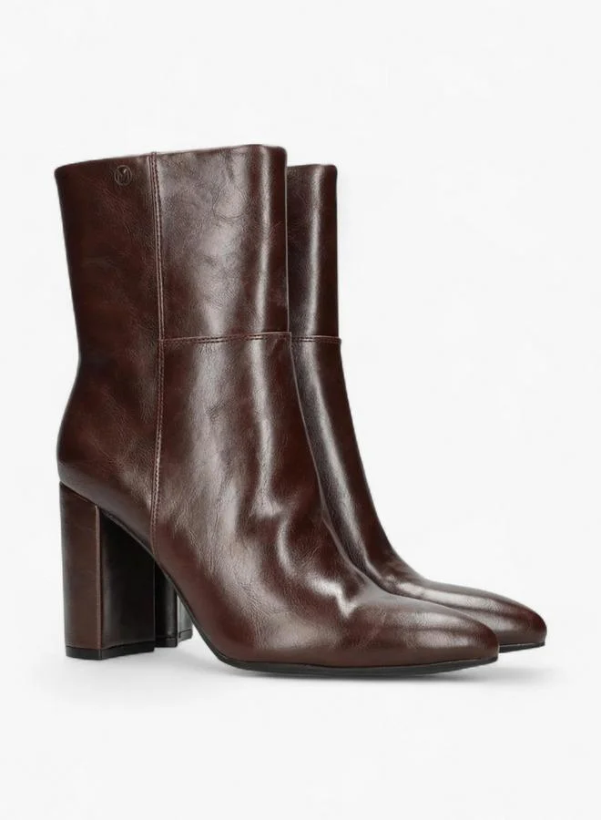 Solid Block Heel Ankle Boots with Zip Closure