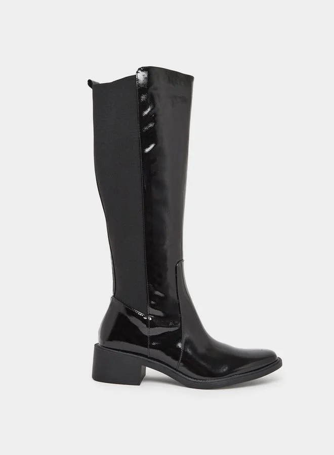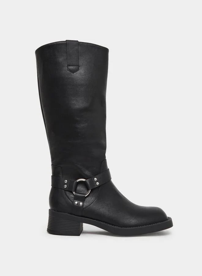Styli Black Square Toe Ankle Boots with Knot Detail