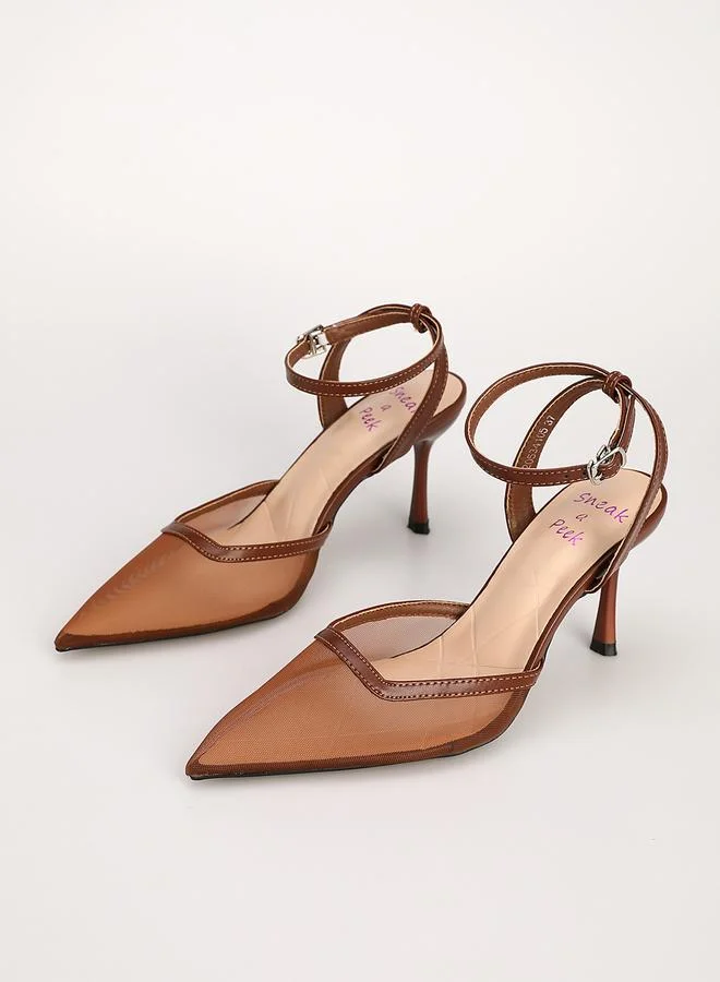 Sneak-a-Peek Beige Embroidered Pointed Toe Sandals