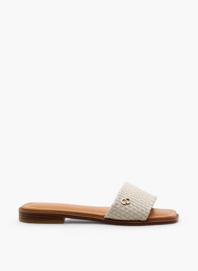 Women's Textured Slip-On Flat Sandals with Metal Accent