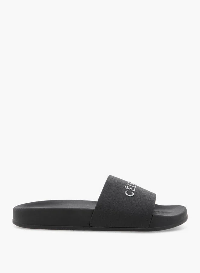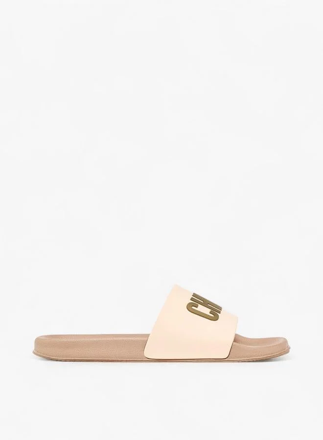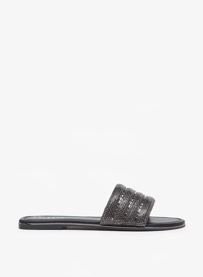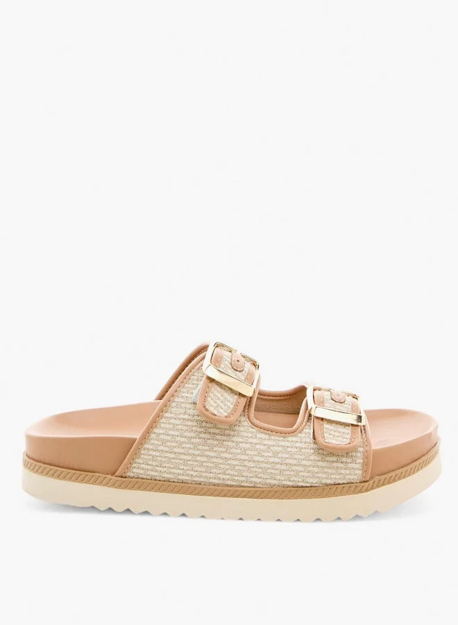 Women's Textured Slip-On Flat Sandals with Metal Accent