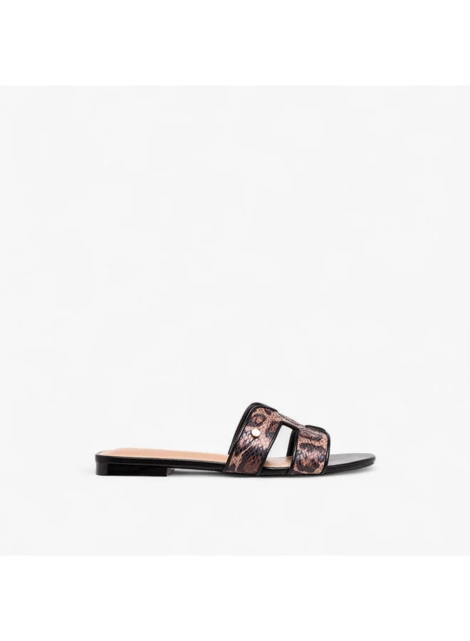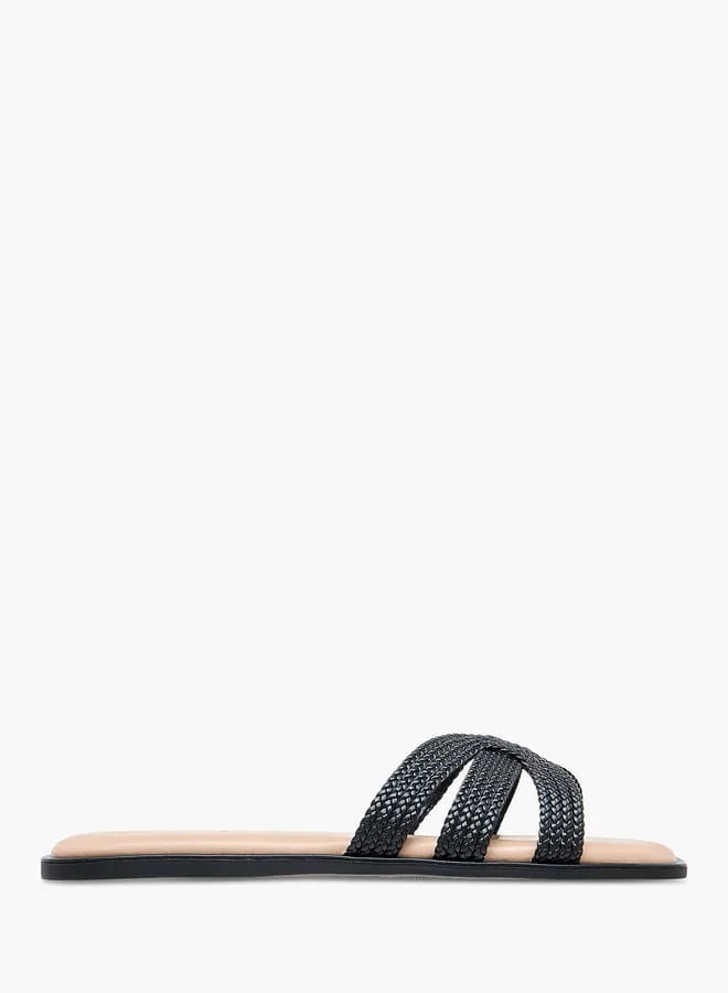 Women's Textured Cut-Out Detail Slip-On Flat Sandals