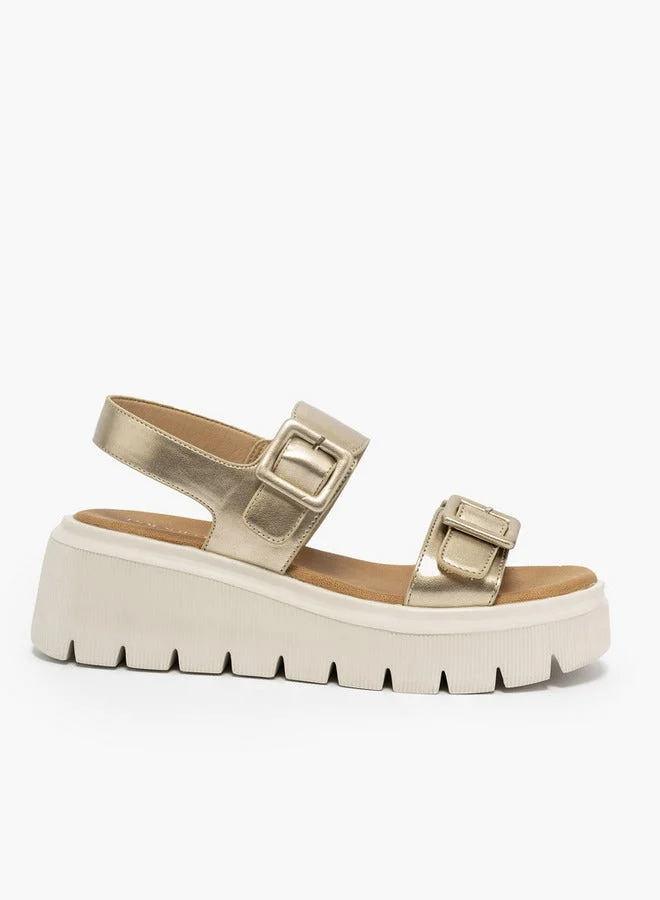 Women's Textured Wedge Heeled Sandals with Buckle Closure