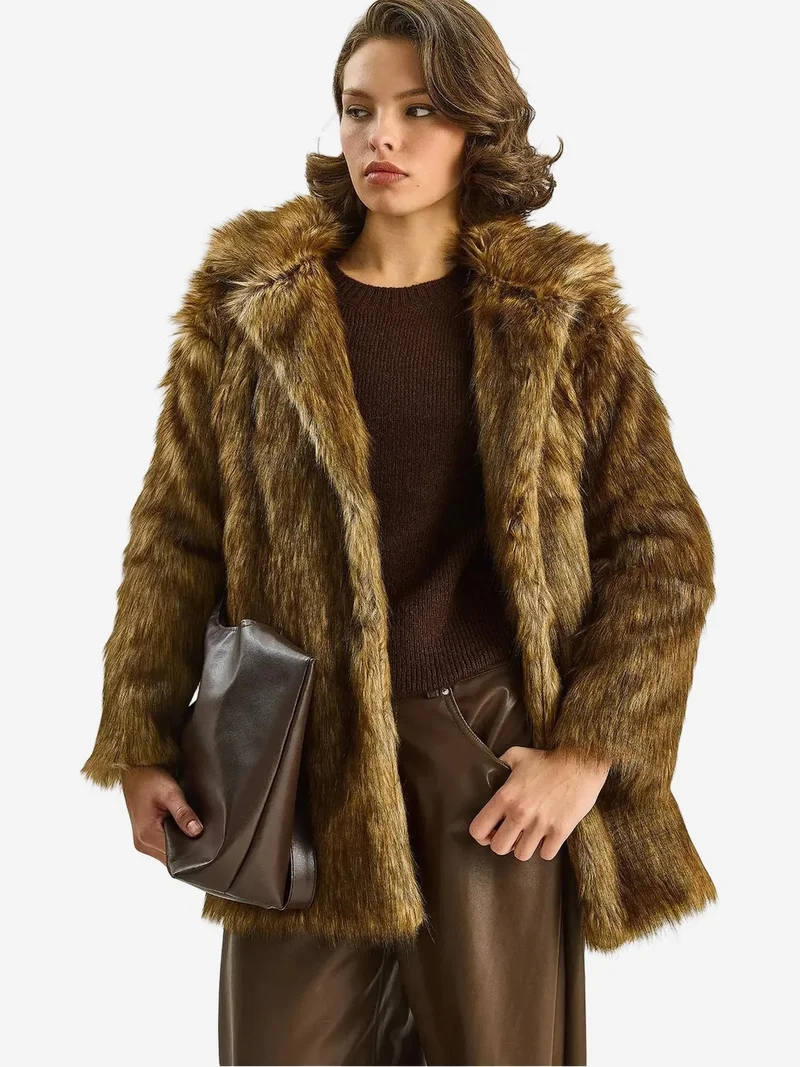 Regular Fit Longline Padded Coat with Faux Fur Hoodie