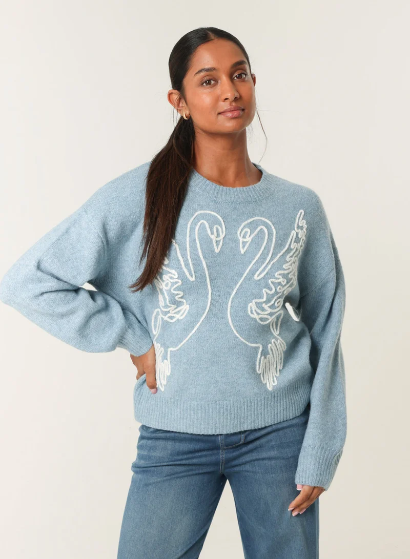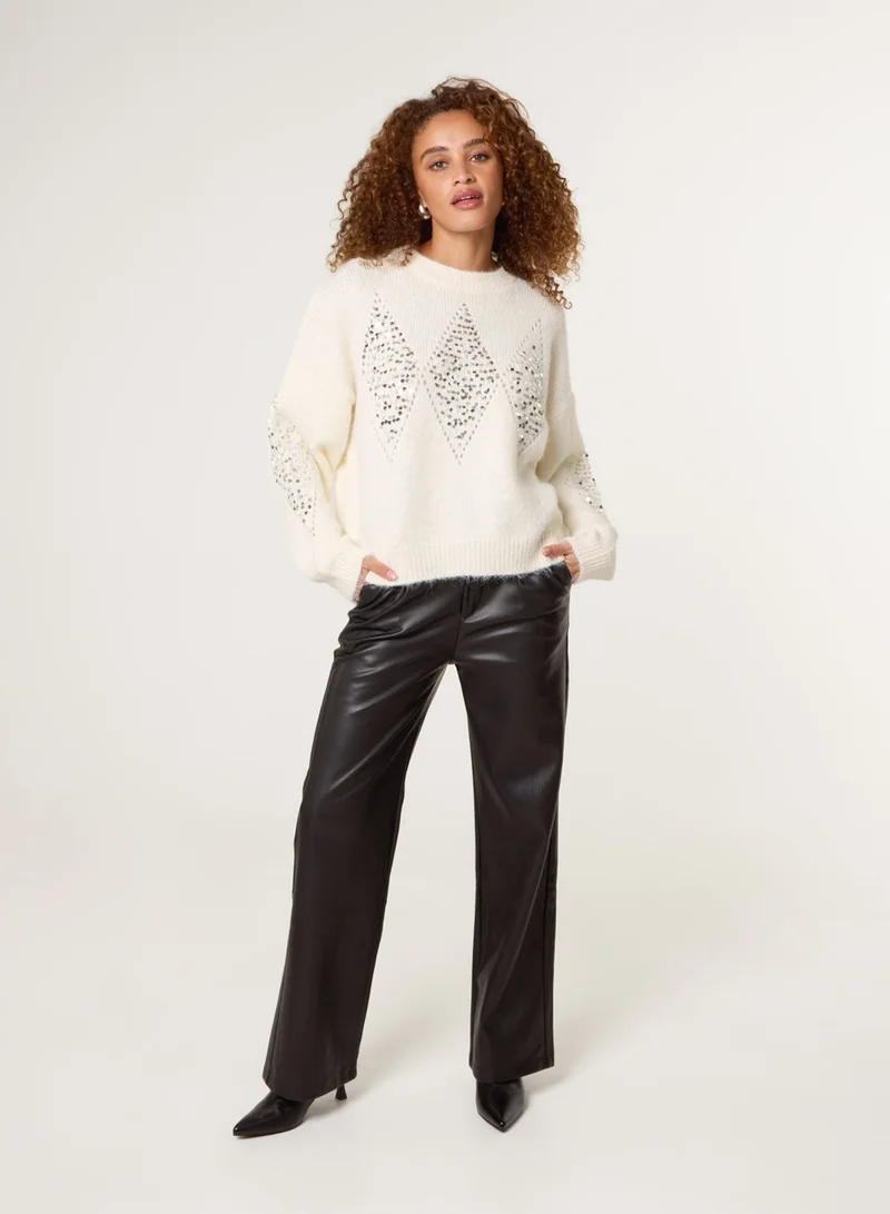 V-Neck Batwing Shoulder Pearl Detailing Jumper
