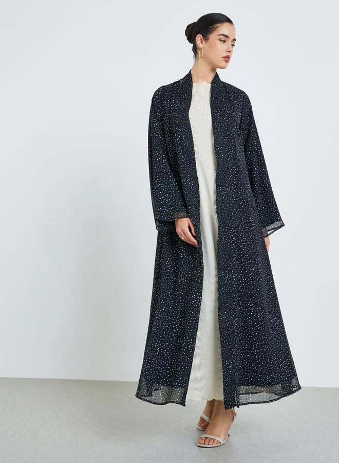 All-Over Printed Textured Pleated Long Sleeve Abaya