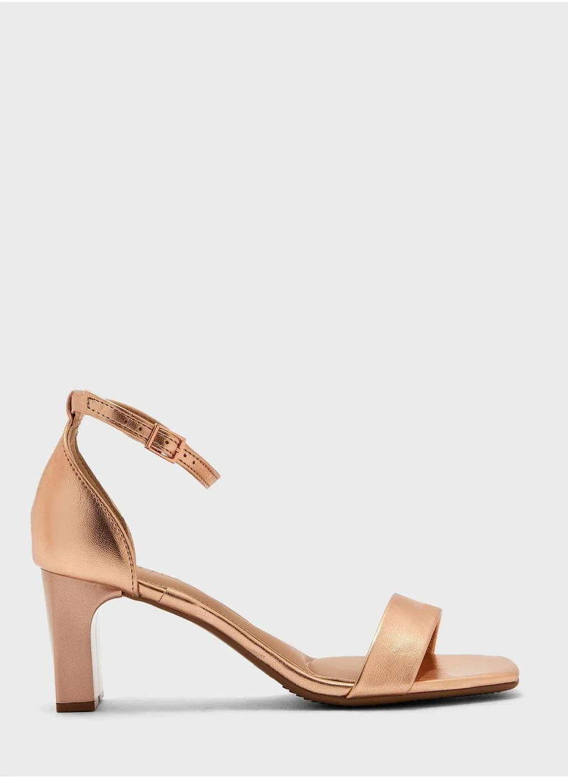 Sandals with branded heel