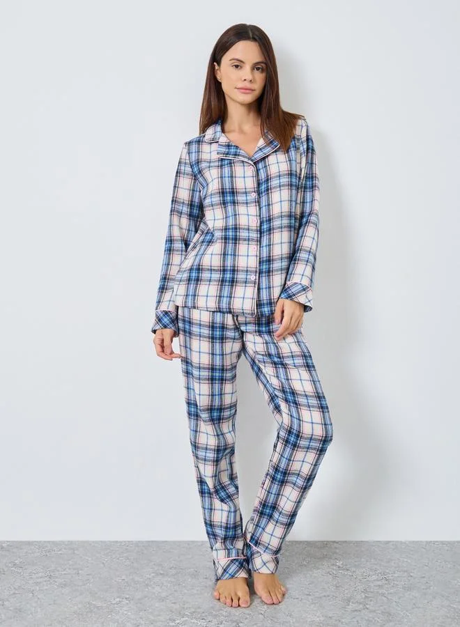 Styli Satin Floral Print Piped Trim Detail Shirt and Pyjama Set