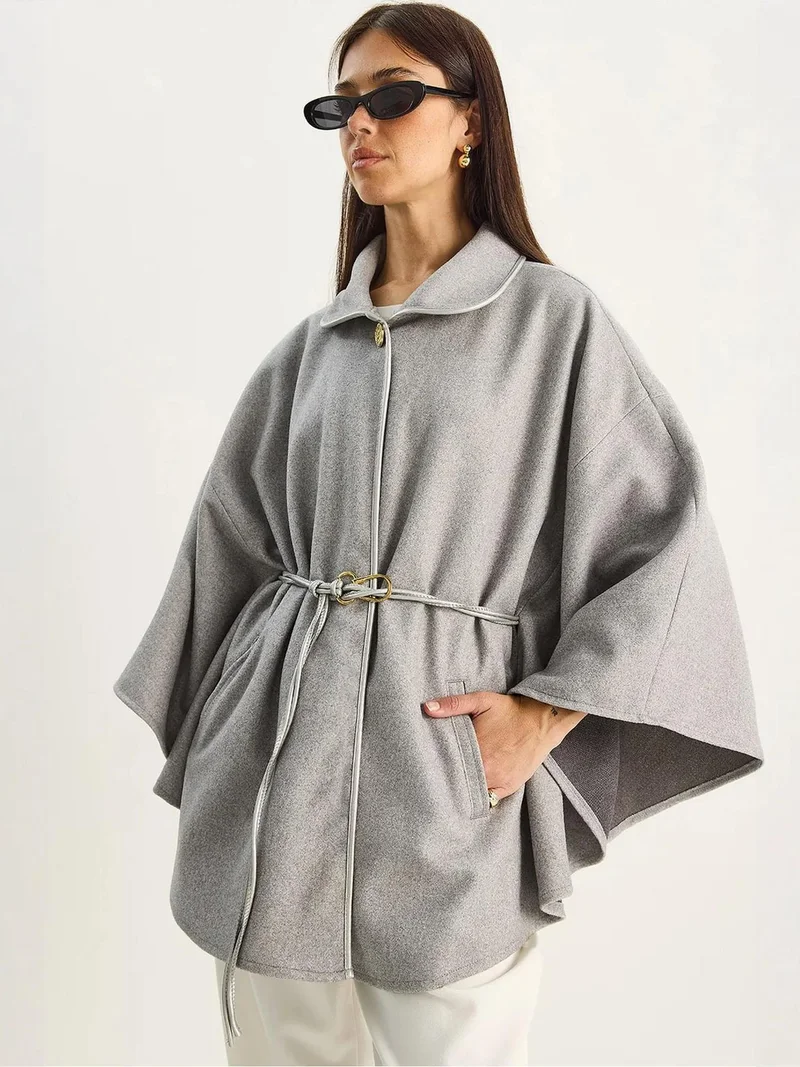 Styli Beige Asymmetric Hem Midi Dress with Belt