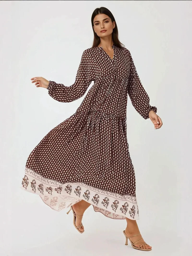 BDART Flowering V-neck Maxi Dress with Three Quarter Sleeves