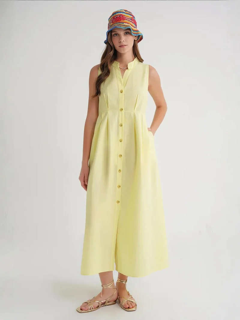 Fold Pleat Detail Self Tie Up A-Line Midi Dress
