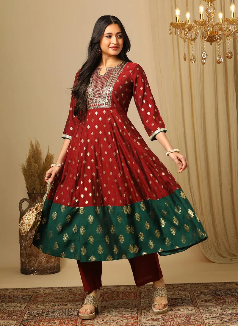 Layered Flare Sleeve Jalabiya with Thread Embroidery