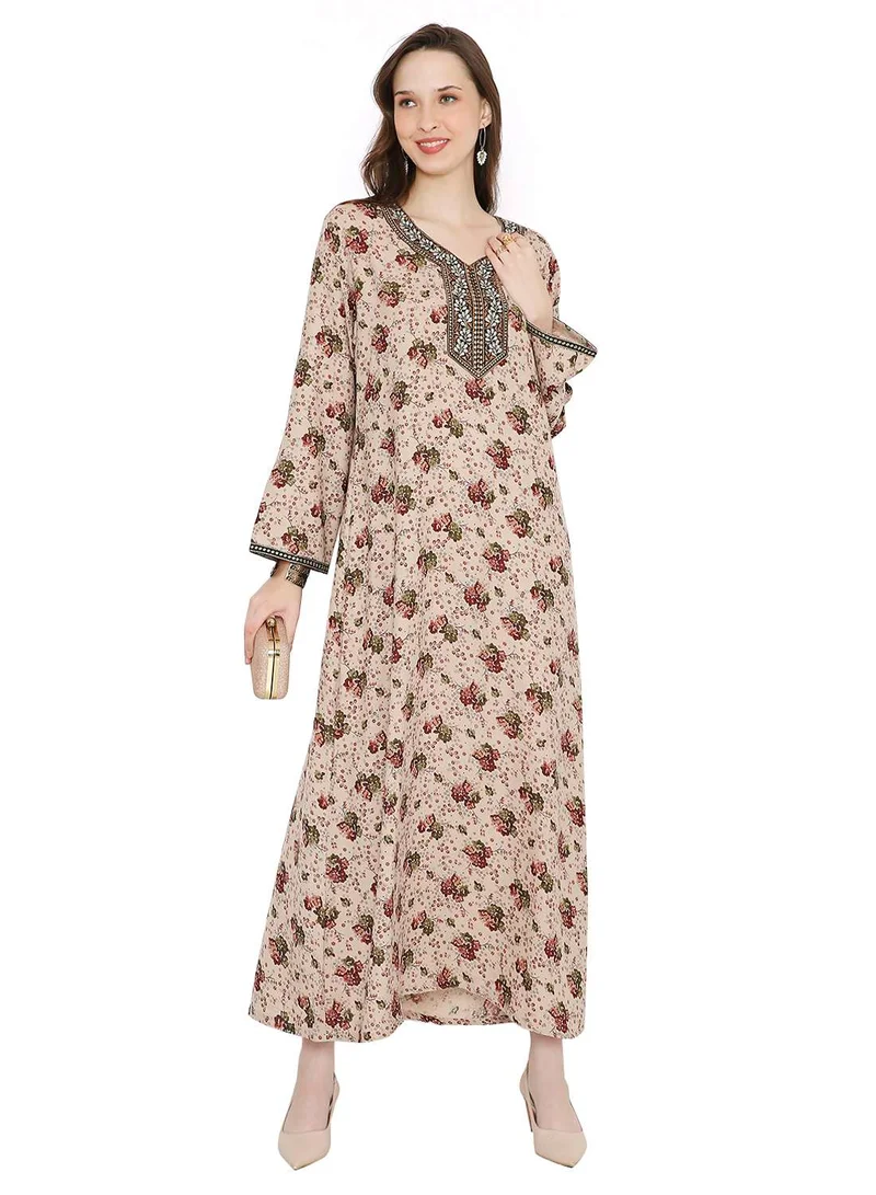 Plus Size Ulla Popken Embellished V-neck Maxi Kaftan Dress