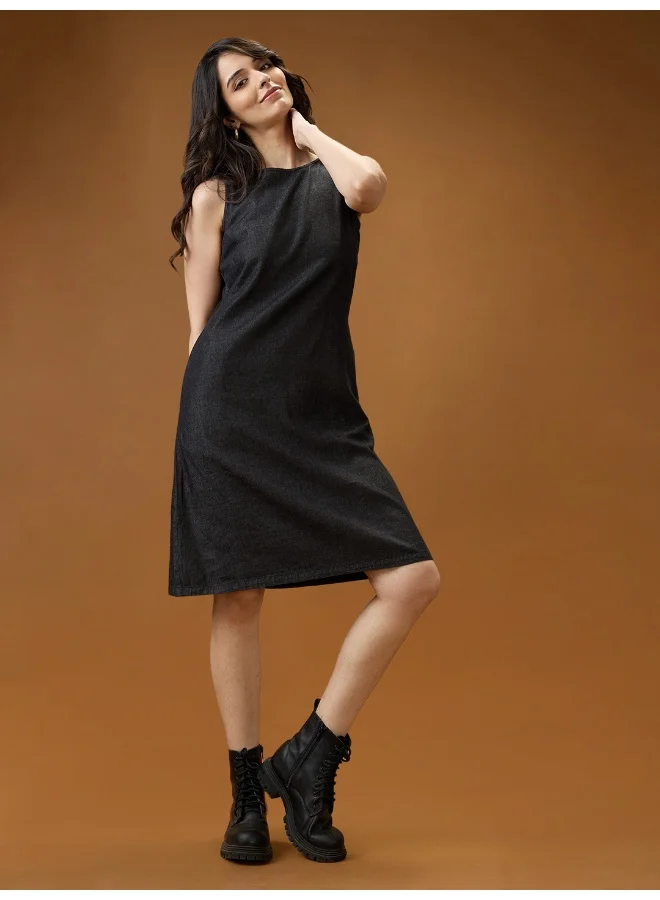 Globus Women Black Sweetheart Neck Cuffed Sleeves Self Design Mini Sheath Workwear Dress
