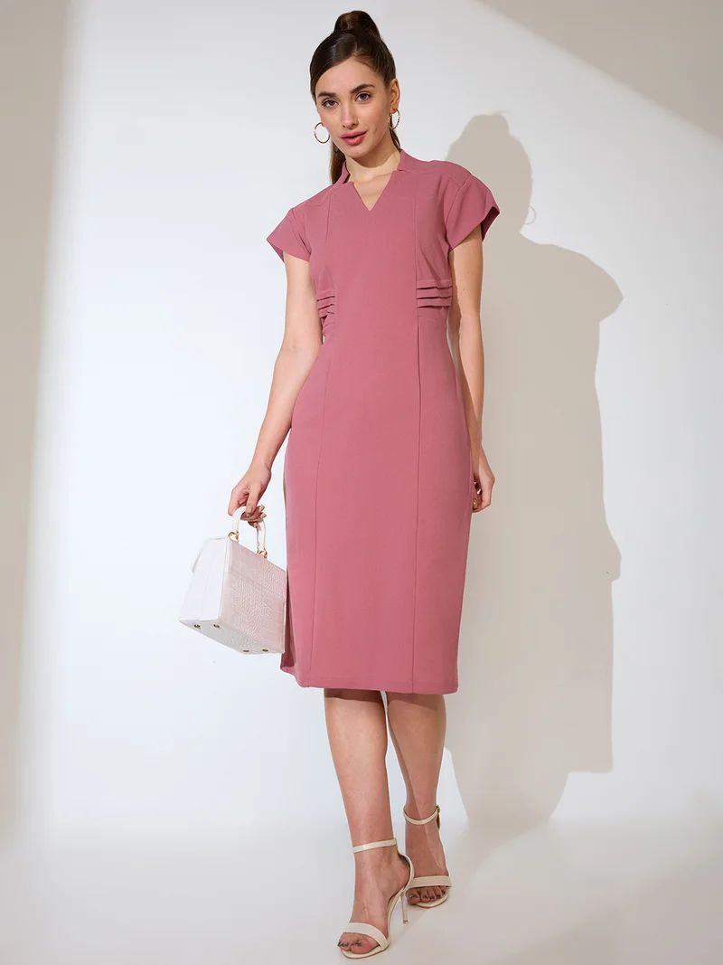 Globus Women Pink Floral Print Puff Sleeves Satin Wrap Party Dress
