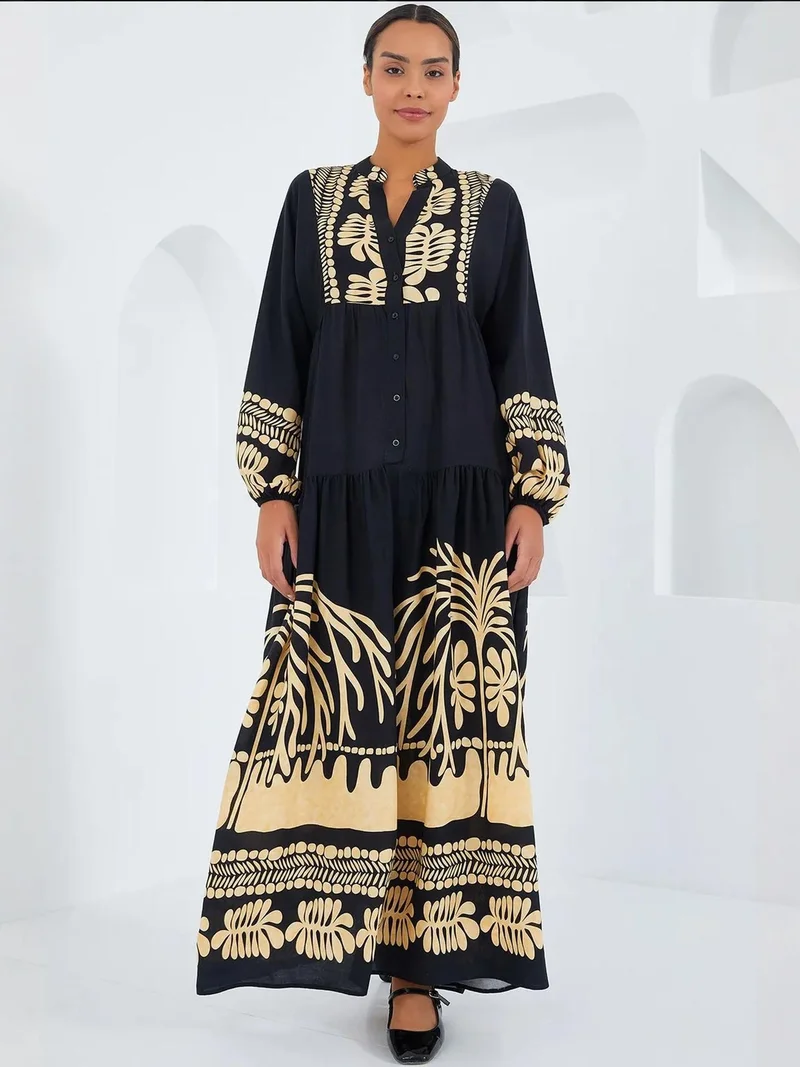 Women's Emerald Green & Navy Blue Fringe Midi Dress For Casual Wear | Crew Neck | Long Sleeve | Zipper Closure | Dress Designed With Comfort Fit For Woman & Girls