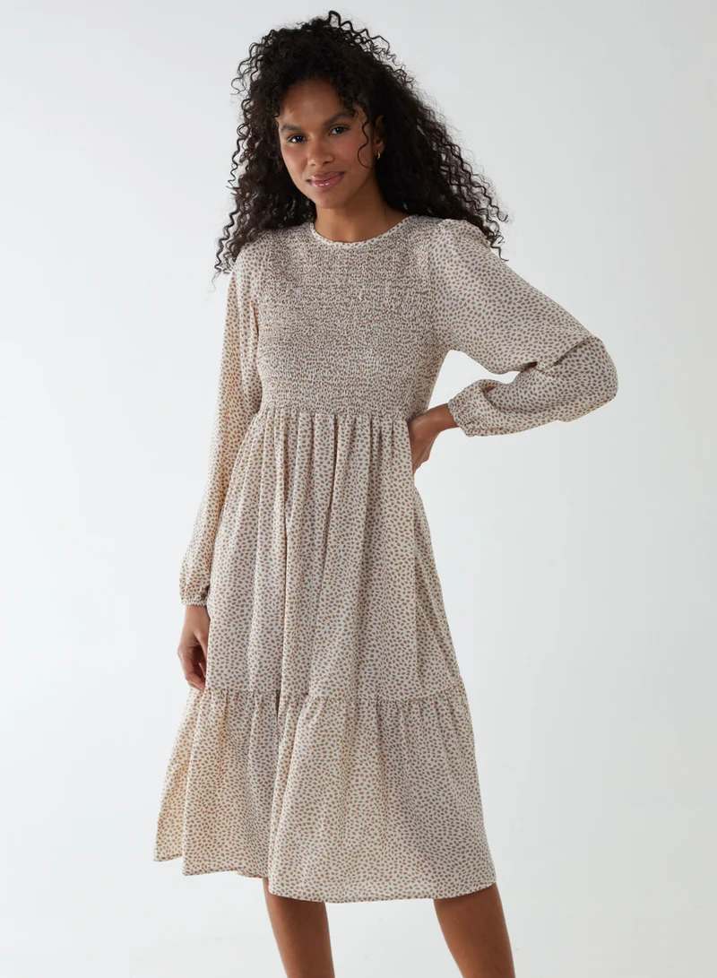 Globus Women Polka Dot Printed Puff Sleeve Tie-Up A-Line Dress
