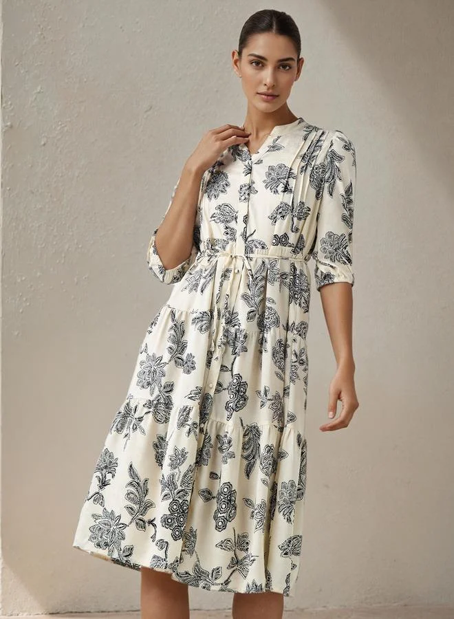 Globus Women Allover Floral Printed Smocked Waist Fit & Flare Midi Dress