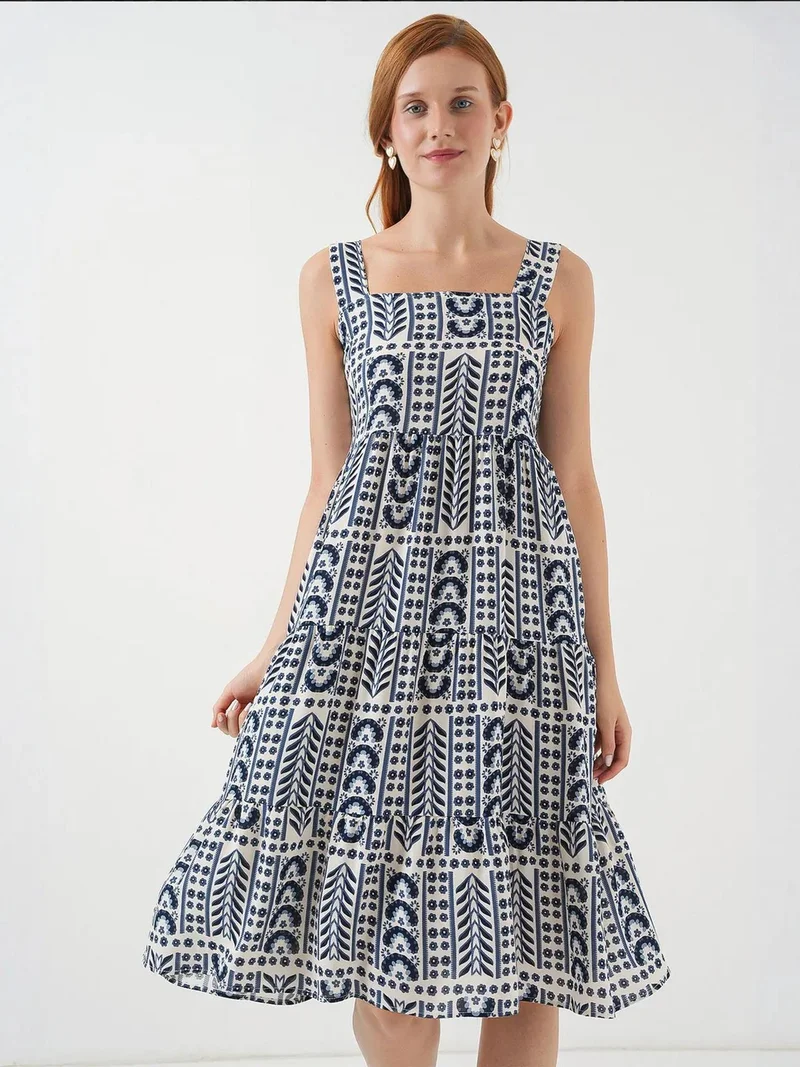 Scoop Neck Spaghetti Strap Midi Bodycon Dress with a Side Slit