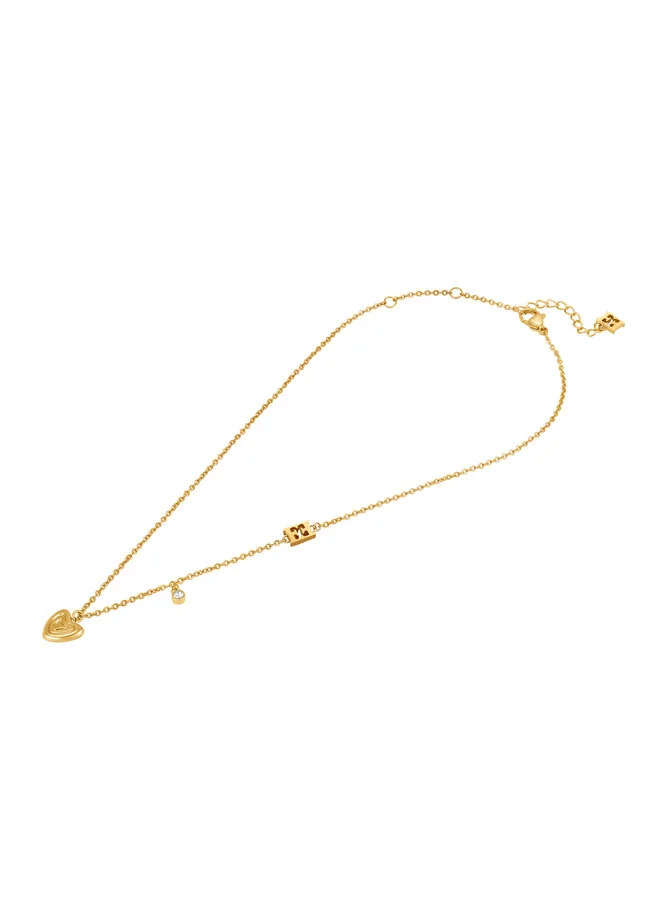 Catherine Gold Plated Heart Motif and Crystal Decked Signature Drop Pendants Necklace for Women