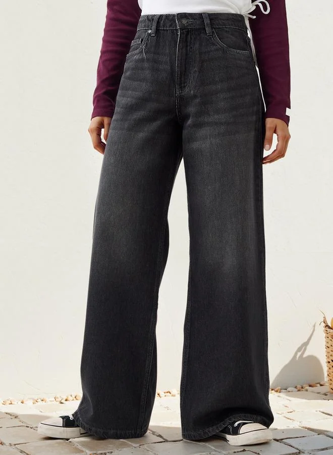Lee Cooper Wide Leg Mid-Rise Jeans with Braided Belt