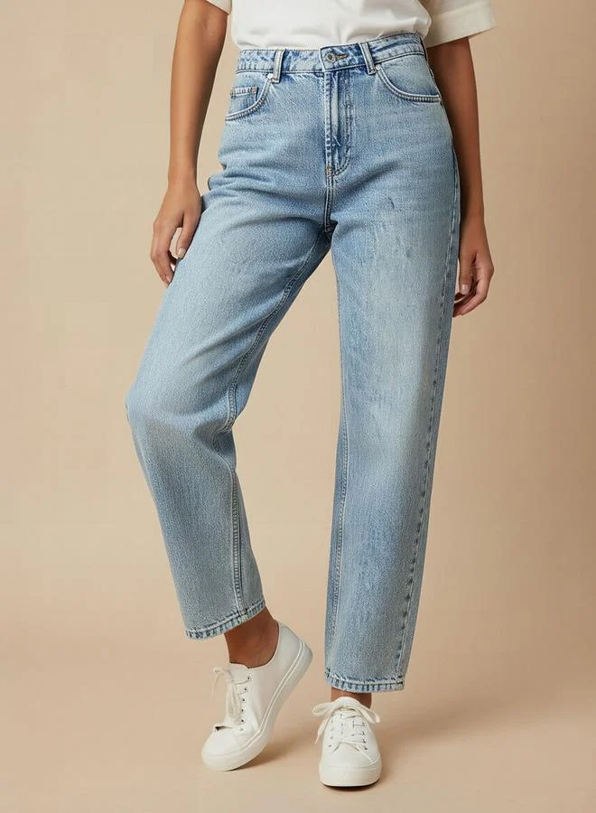 Lee Cooper Straight Fit High-Rise Cotton Jeans with Pockets