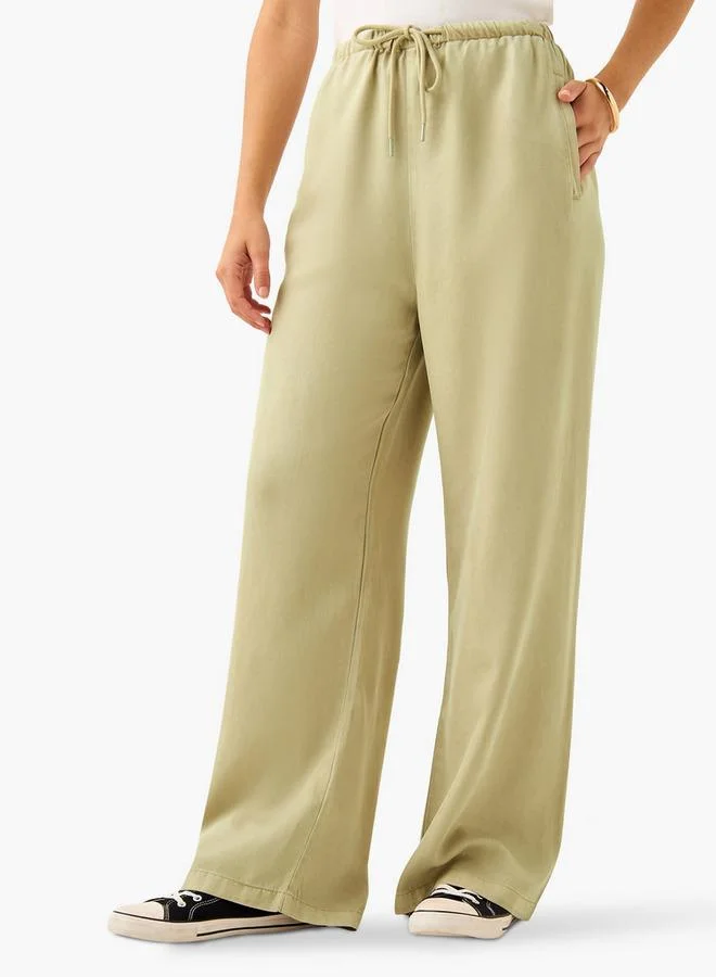 Lee Cooper High-Rise Wide Leg Pants with Drawstring Closure and Pockets