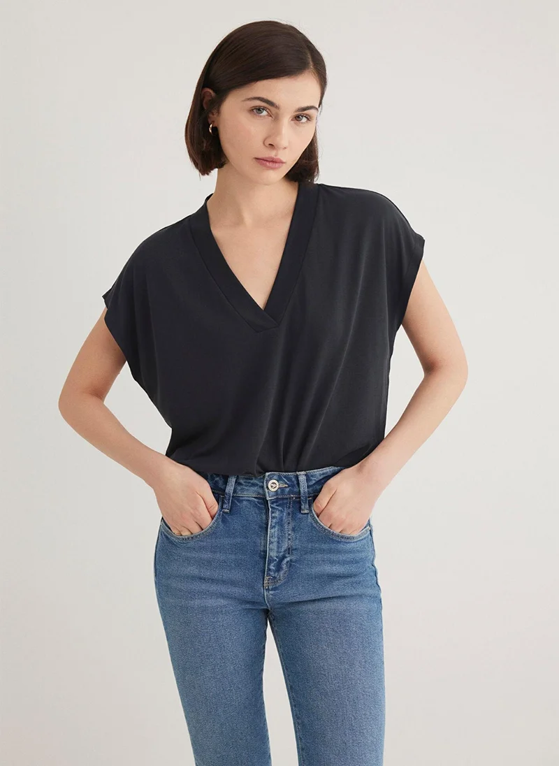 Black Tencel TM Lyocell Blend Sleeveless Blouse