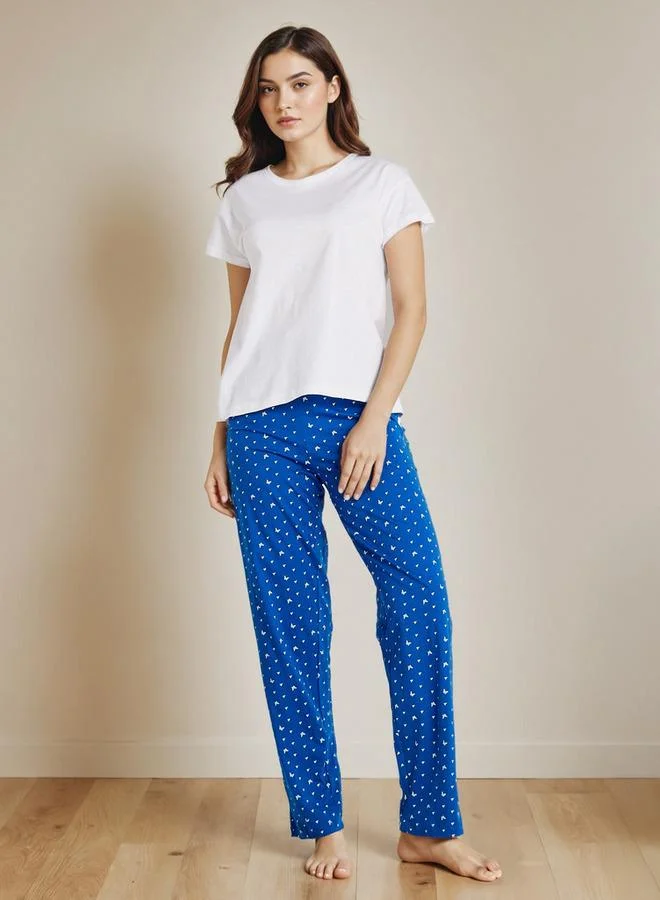 Women's Lilac Cotton Printed Shrug Upper Calf Length Pleat Front Bottom Straight Fit Co-Ords Set