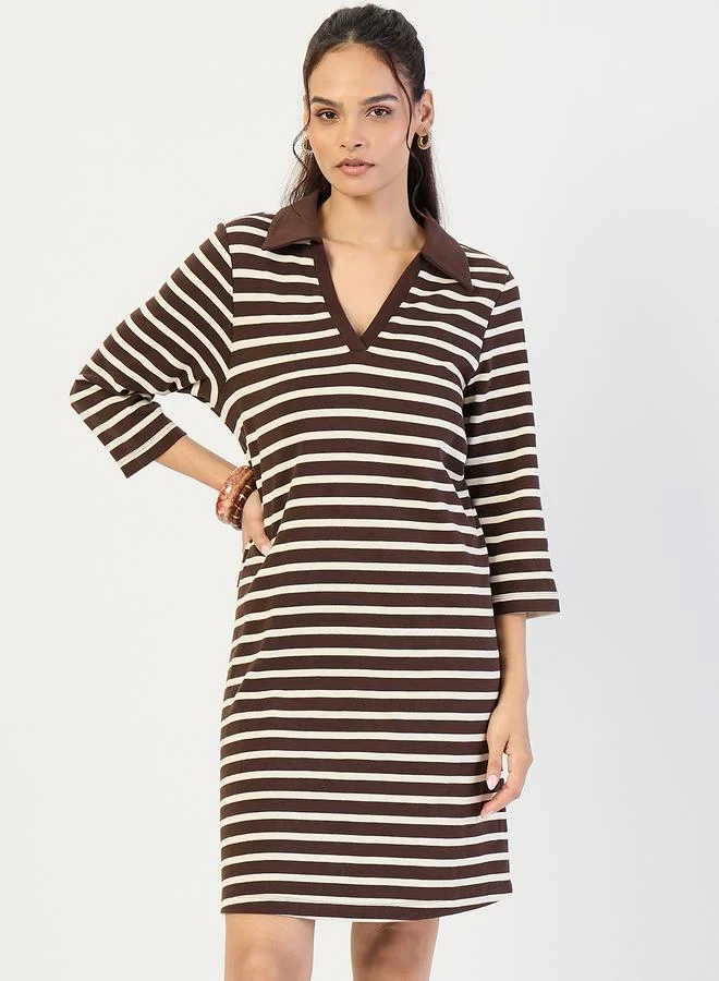Take Two Floral Print V-Neck Smocked Detail Knee Length Dress