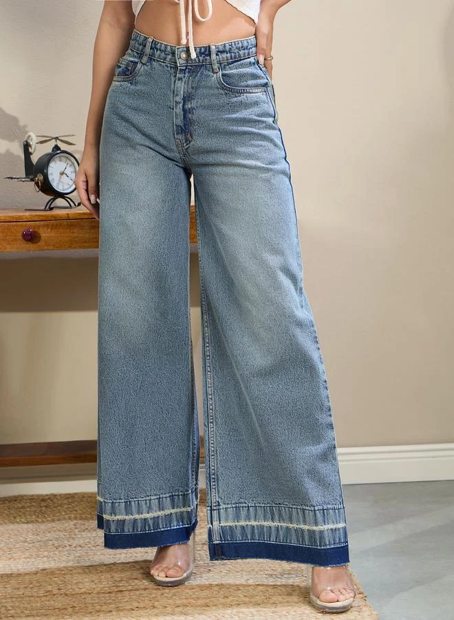 Sassafras Blue Washed Low Waist Wide Leg Jeans