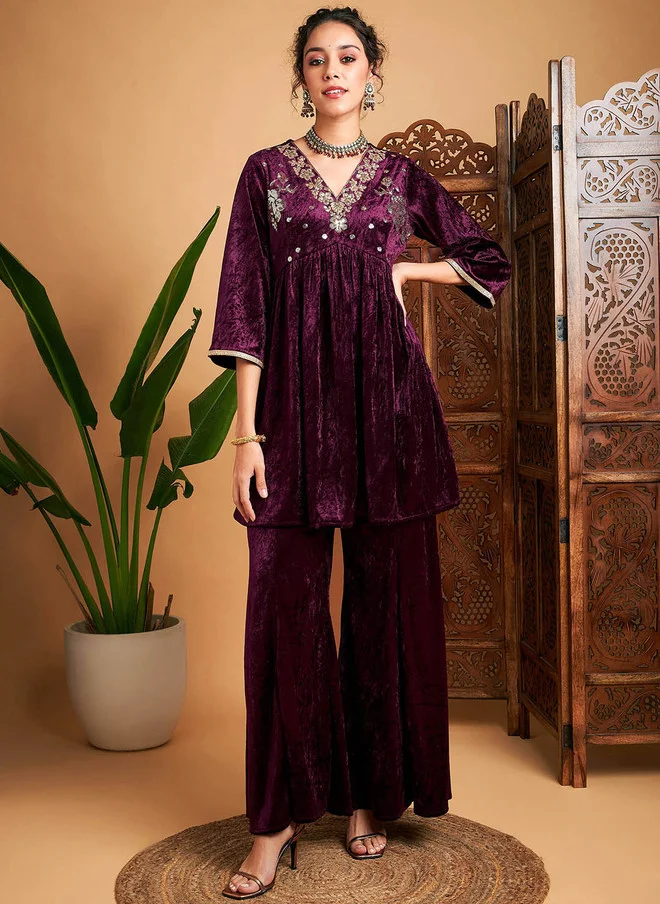 Embroidered Anarkali Kurti With Palazzo Set For Women