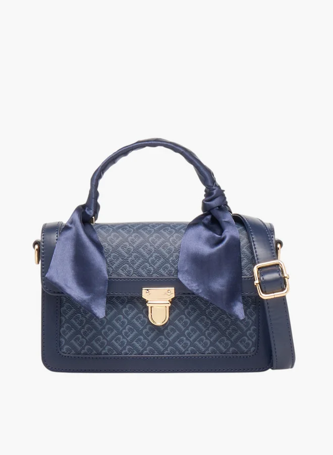 Monogram Print Satchel Bag with Detachable Strap