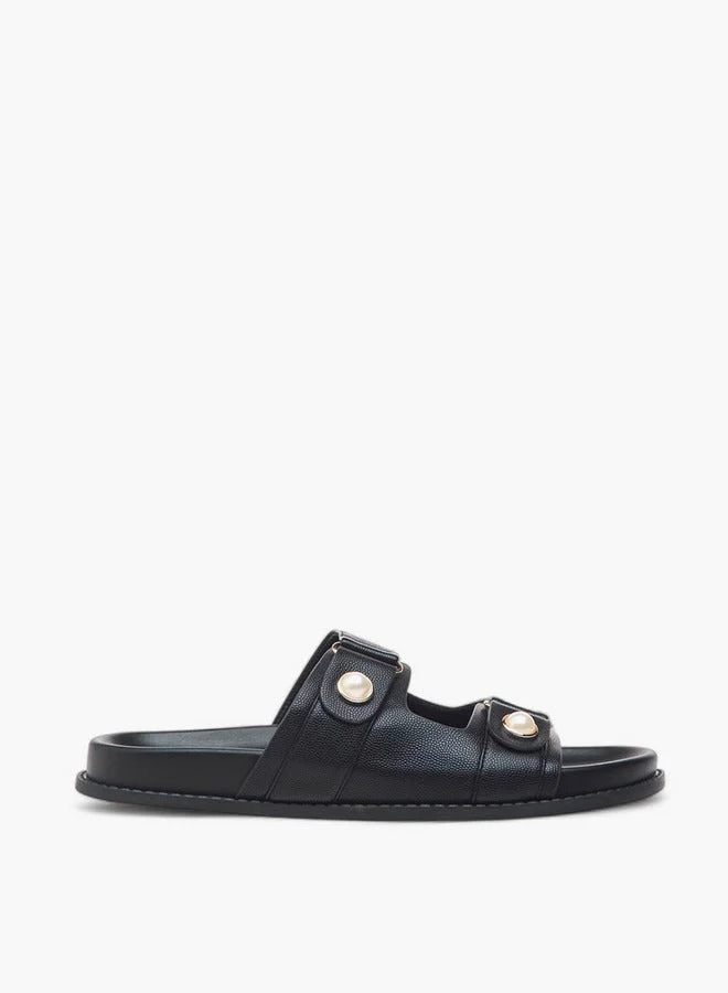 Textured Pearl Embellished Slip-On Flat Sandals