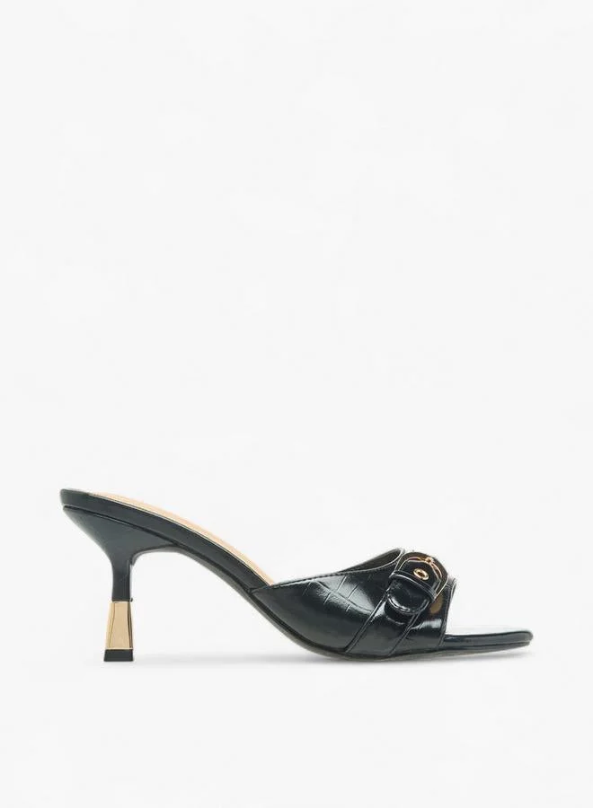 Women Buckle Detail Flared Heel Sandals